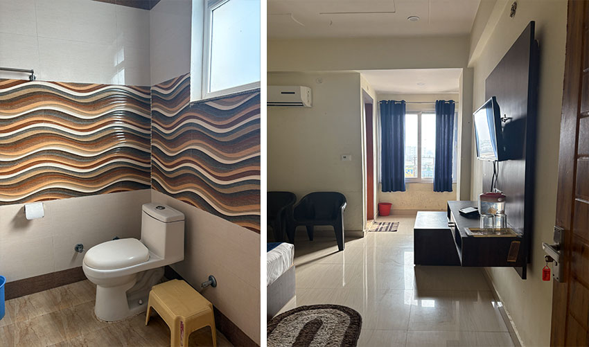 Our Rooms perfect venue to unwind and rejuvenate yourself. Exquisitely detailed modern design features teak floors, over sized mirrors & windows in a large spacious room area. Enjoy King sized bed, work table in room with high-speed Internet access and adequate sized bathroom with shower. We're in the business of Exceeding Expectations. Overall it was a decent place for families to stay with all required eminities and services.