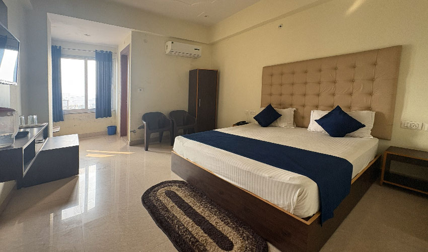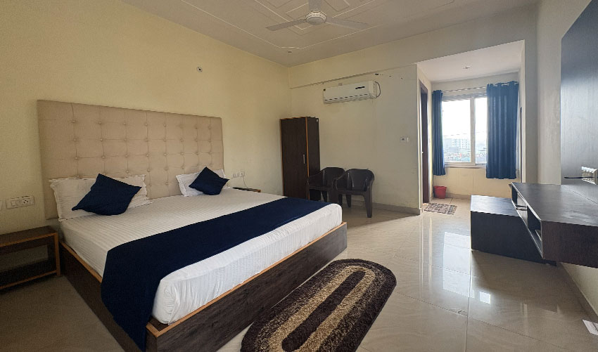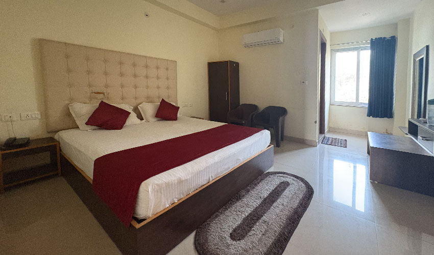 perfect venue to unwind and rejuvenate yourself. Exquisitely detailed modern design features teak floors, over sized mirrors & windows in a large spacious room area. Enjoy Executive King Bed Rooms, work table in room with high-speed Internet access and adequate sized bathroom with shower. We're in the business of Exceeding Expectations. he property is located at a prime location near city Rishikesh and is well-maintained with clean and spacious rooms.